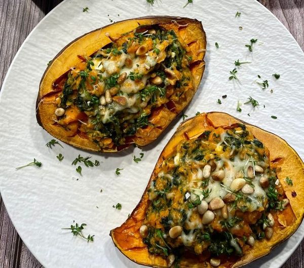 Gefüllte Süßkartoffeln mit Spinat und Feta